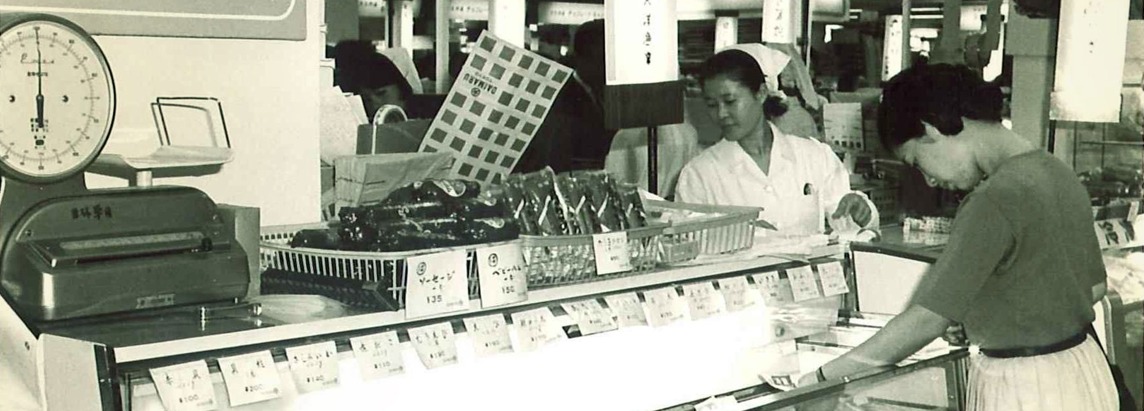 Began full-scale production and sales of fish sausages, a popular food in Japan. They are made of minced fish and were a valuable source of protein during this time. They have since become an enduring bestseller for over fifty years now.