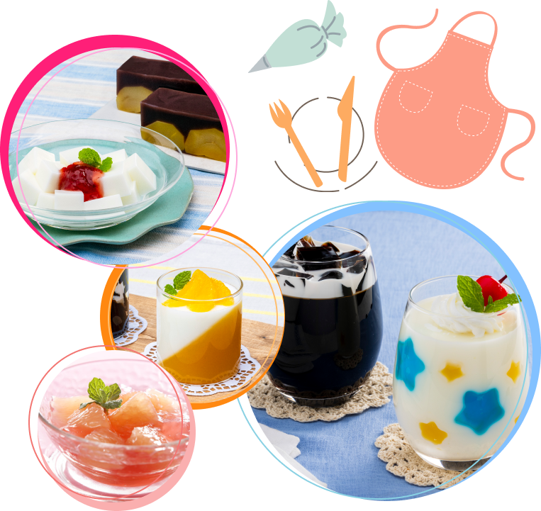 ゼリー、ムース、パンナコッタ、ババロア、マシュマロ