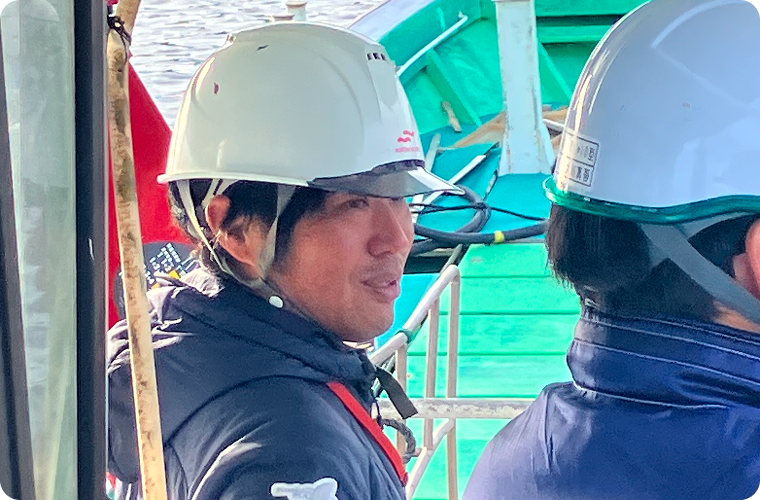 もう一つ大変なこと、自然相手の仕事という事です。風の強い日、波の高い日、大雨の日など、自分たちではどうにもできない事が沢山あります。