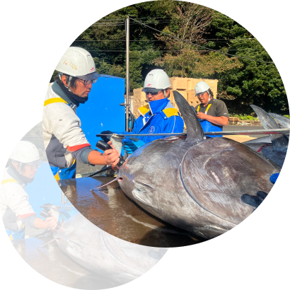 現在は、出荷、漁場メンテナンスといった海上作業に加え、魚体確認、生簀の組み立て、流し込み(生簀の合流)といった潜水業務を行っています。出荷では、3年から4年かけて育てた50 kgから100 kg程度のマグロを釣り上げ、お客様へお届けします。また、生簀繰りや尾数管理といった生産管理業務も行い、計画通りに生産・出荷できるよう日々取り組んでいます。