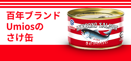 百年ブランド、Umiosのさけ缶百年ブランド、Umiosのさけ缶。サケ缶に関するさまざまな情報をご紹介します。
