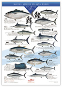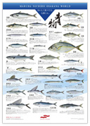 スーパーマーケットなどでは一匹そのままの魚を目にすることが少なくなりました。ご家族皆様でこのポスターを眺めながら魚の美しい形や色、おいしい食べ方などを知っていただければと考えています。