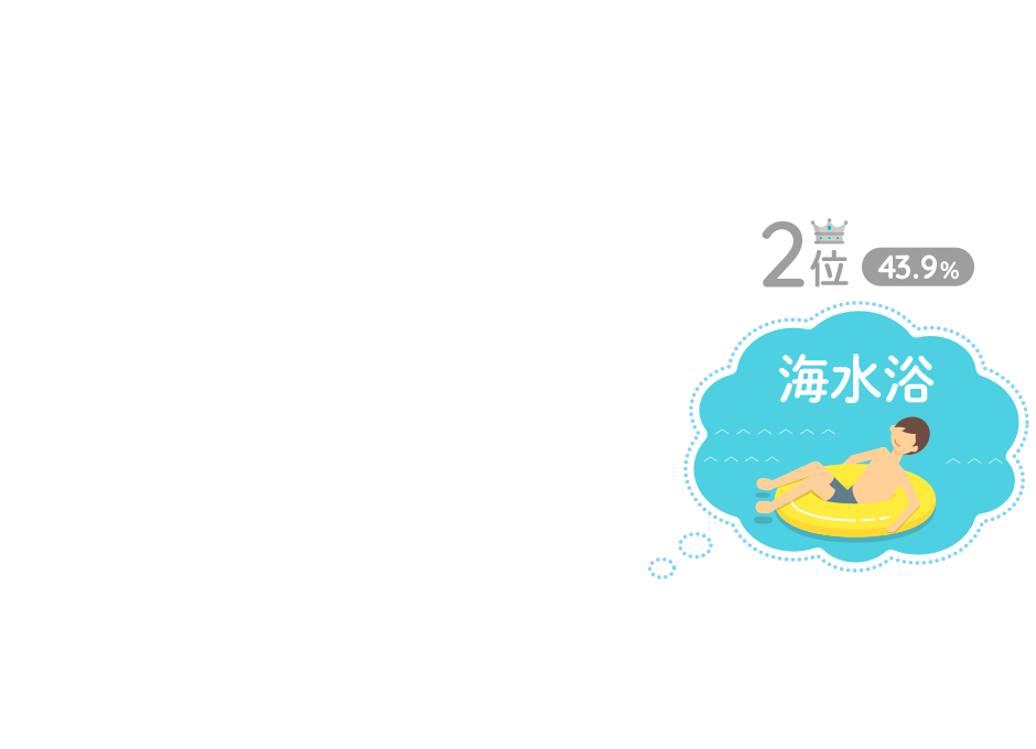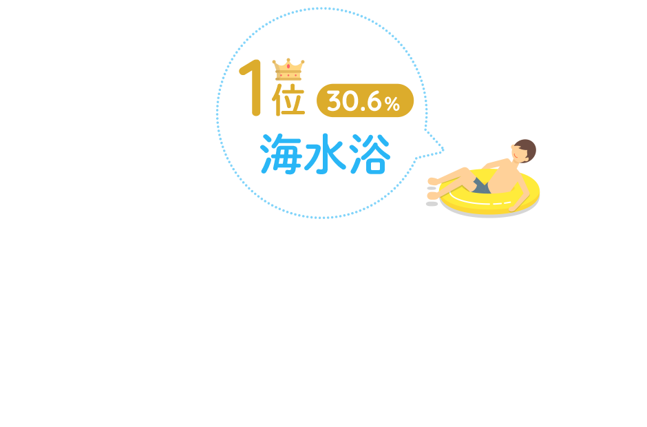 ほかに「ドライブ(15.6%)」や「花火(14.3%)」「海の幸を食べる(12.1%)」といった回答もみられました。また、友人と楽しみたい海レジャー のツートップは「花火(49.4%)」と「バーベキュー(49.2%)」でした。