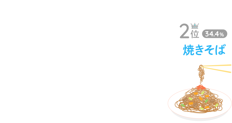 4位は「イカ焼き(19.2%)」5位「フランクフルト(18.8%)」、6位「ラーメン(17.6%)」、9位には「カレー」「冷やし中華」(それぞれ15.9%)がランクインしており、昔ながらの定番メニューが人気のようです。