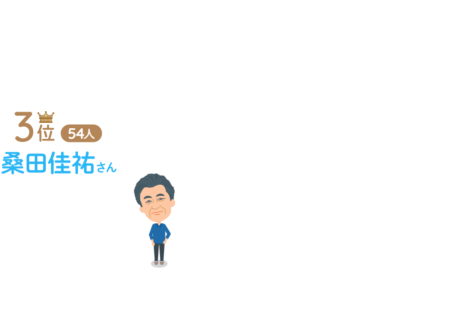 上位5位を歌手・バンドが占め、海をテーマにした歌をたくさん歌っている加山雄三さんがダントツでした。世代別にみると、10代ではお笑い芸人の「濱口優さん」が1位となったほか、2位に「桐谷健太さん」、5位に「山﨑賢人さん」がランクインしており、他の世代とは異なる傾向がみられました。