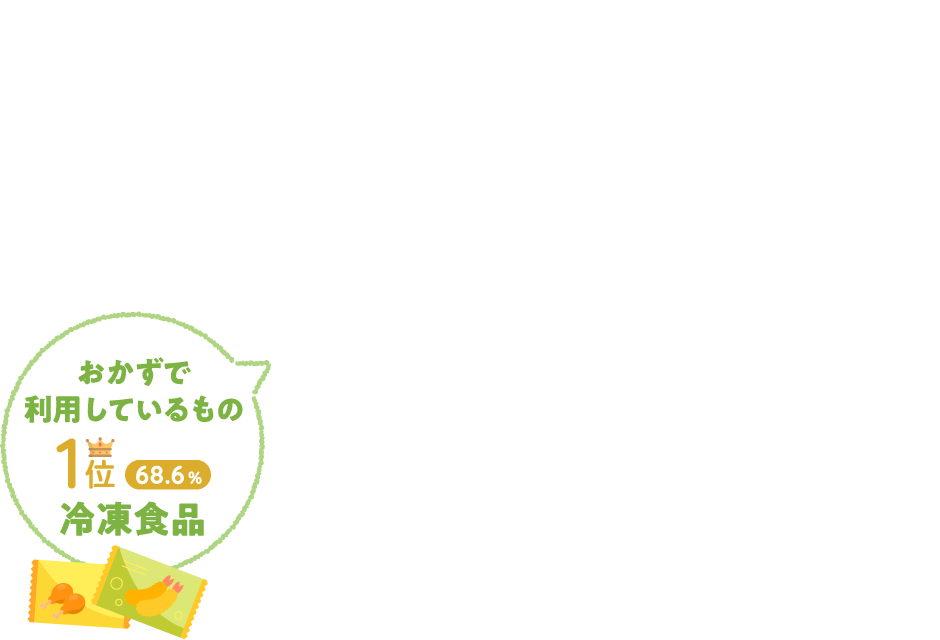 お弁当のおかずとして利用しているものは、「冷凍食品」(68.6%)が最も多く、次いで、「当日手作りしたおかず」(62.7%)「前日の食事の残り物」(60.3%)「作り置きしたおかず」(45.4%)「レトルト食品」(31.5%)となりました。冷凍食品を利用している人が最も多くなっていますが、冷凍食品の使い勝手のよさや手軽さを評価している人が多いのではないでしょうか。