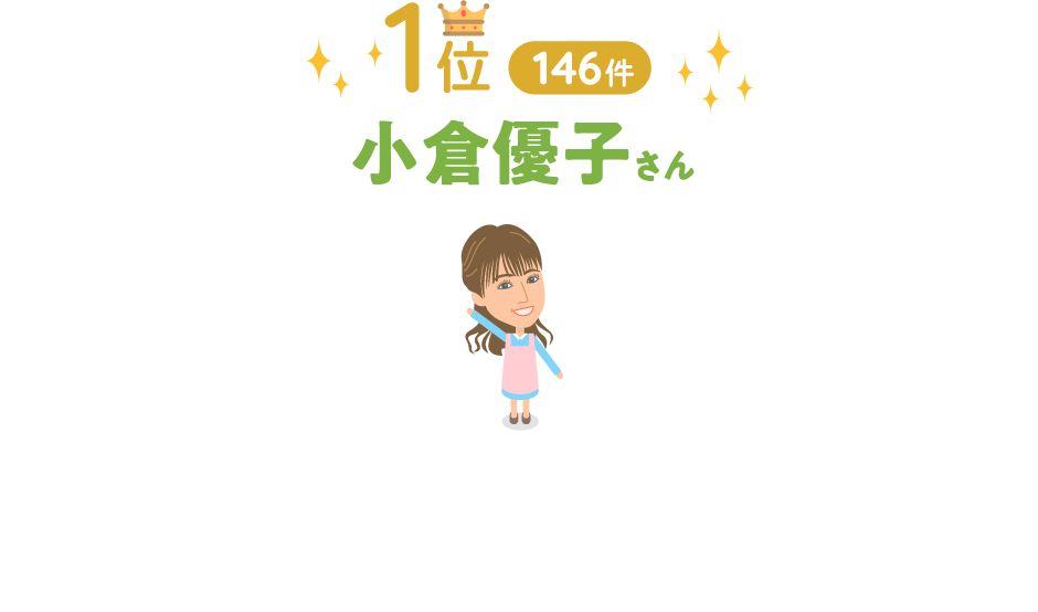 お弁当作りでお手本にしたい芸能人ママを聞いたところ、1位「小倉優子さん」(146件)、2位「ギャル曽根さん」(106件)、3位「辻希美さん」(57件)、4位「北斗晶さん」(38件)、5位「木下優樹菜さん」(20件)となりました。「小倉優子さん」のブログにアップされる写真をみてお弁当作りの勉強をしたいと思っている人が多いのかもしれません。