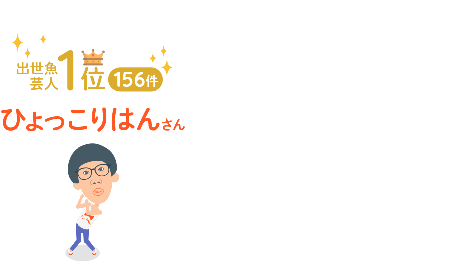 ≪今年一番の出世魚芸人(出世魚のごとく、ぐんぐんと成長し、飛躍を遂げたお笑い芸人)≫を聞いたところ、1位「ひょっこりはんさん」(156 件)、2位「みやぞんさん」(70件)、3位「千鳥」(46件)となりました。子どもから大人までに大人気だったひょっこりはんさんがダントツとなっています。他に、≪今年一番の出世魚俳優≫を聞いたところ、1位「田中圭さん」(81件)、≪今年一番の出世魚女優≫を聞いたところ、1位「永野芽郁さん」(39件)、となりました。