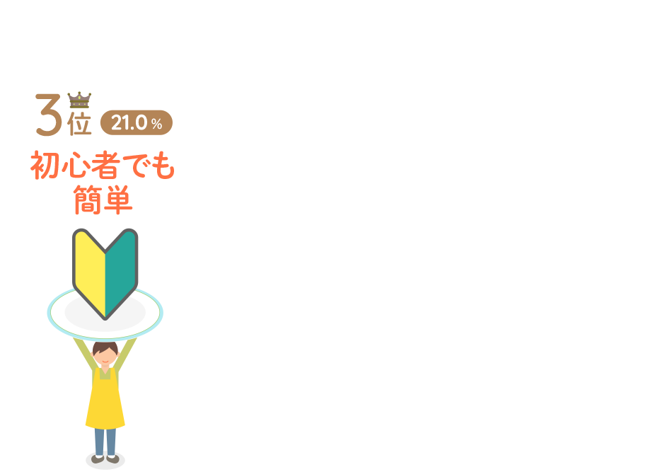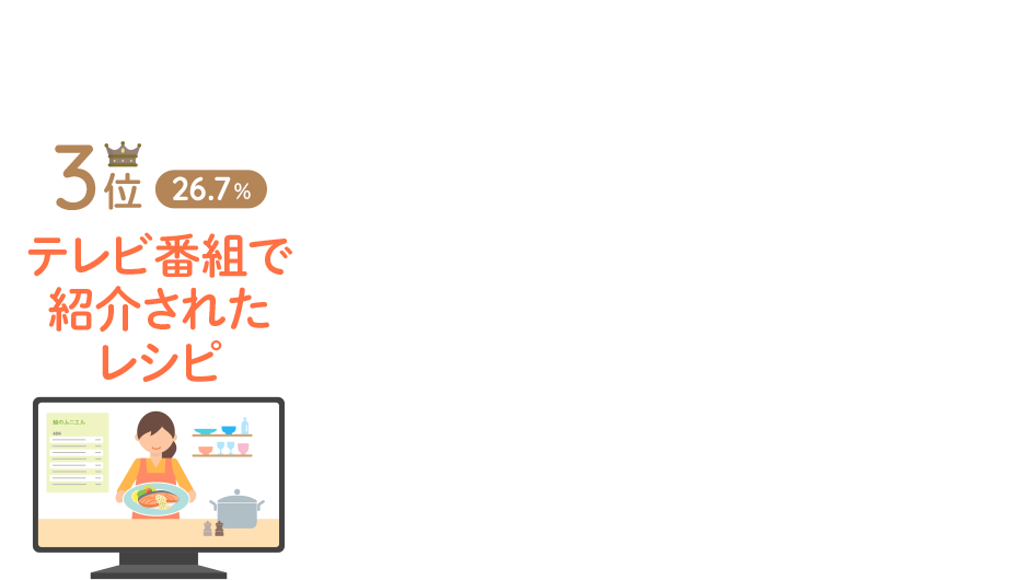 全回答者(1,000名)に、レシピサイトで思わずクリックしたくなる“キーワード”や“ハッシュタグ”を聞いたところ、1位「簡単・お手軽 」(38.1%)、2位「時短」(23.7%)、 3位「初心者でも簡単」(21.0%)、 4位「節約」(17.8%)、5位「レンジで作る」(16.4%)となりました。 簡単料理や節約料理のレシピだと見てみたいと思う人が多いようです。
