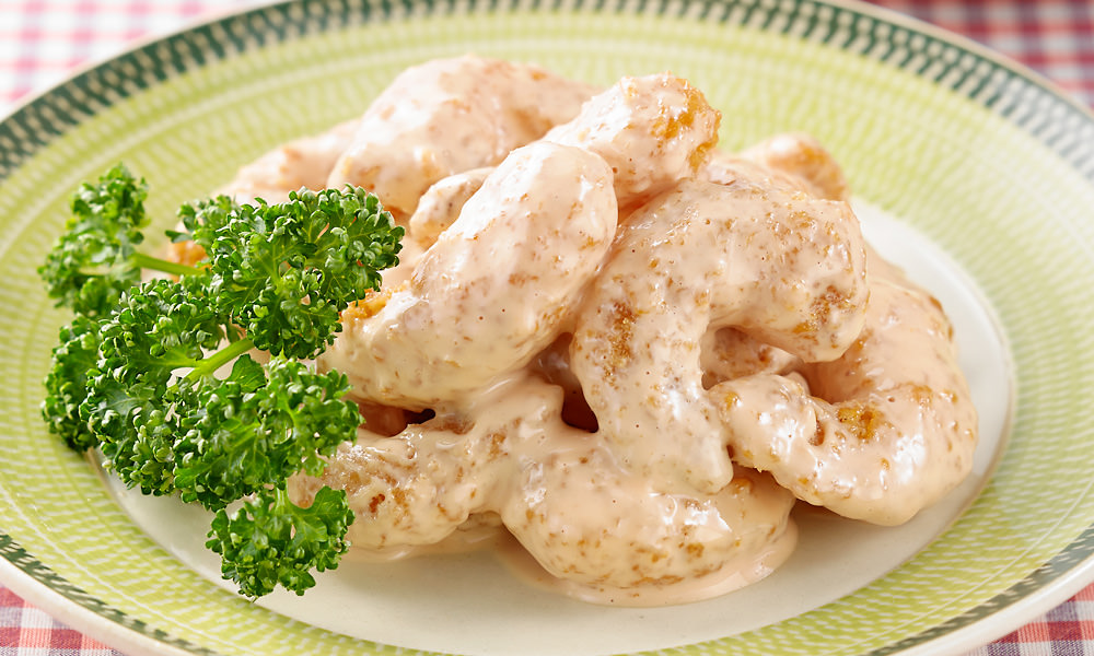 【油で揚げる専用】えびフライ(Umios) 10尾 揚げ油 適量 または 【電子レンジ調理専用】えびフライ(Umios) 10尾 A マヨネーズ 大さじ3 トマトケチャップ 小さじ1 レモン汁 少々 砂糖 小さじ1/2 牛乳 小さじ1 ラー油 少々 (付け合わせ)パセリ 適宜