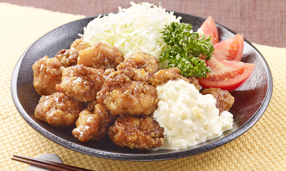 1 A を小鍋に入れ、弱火で砂糖が溶けるまで温める 2 若鶏和風竜田揚げまたはめっちゃうまいからあげを温め 1 に漬け込む 3 タルタルソースを準備する 4 2 3 、千切りキャベツ、トマト等付け合わせの野菜を盛りつける