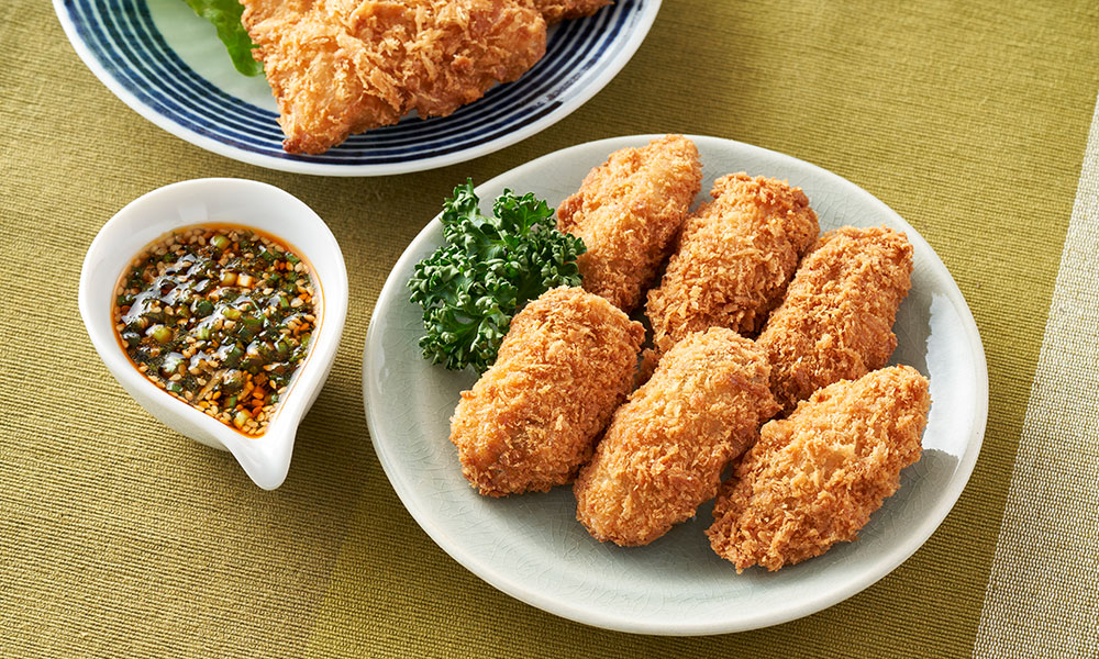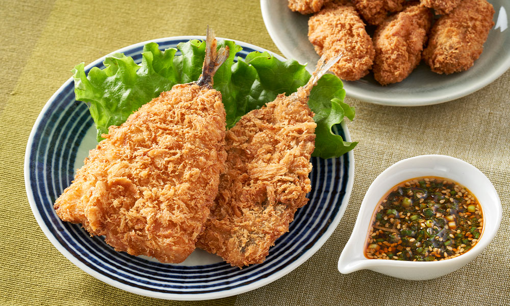 または【電子レンジ調理専用】あじフライを温める2 かきフライを揚げる 3 Aを混ぜ合わせて、1、2にかけていただく