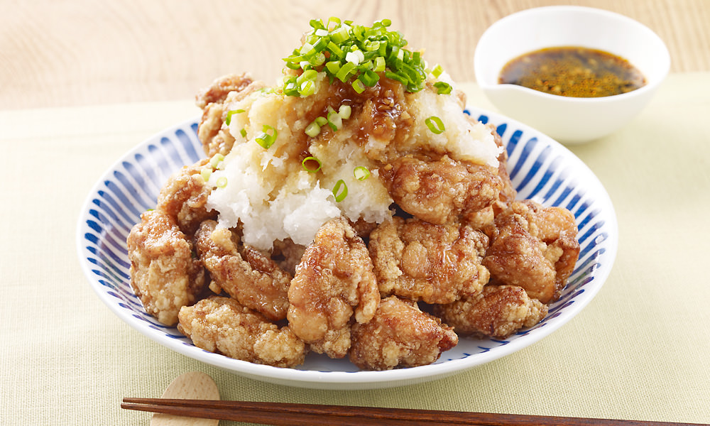 鶏の唐揚げピリ辛おろしポン酢かけ 若鶏和風竜田揚げで作った場合 時間 10分 ワンポイントアドバイス ラー油のごま油の香りとピリっとした辛味がアクセント。大根おろしと一緒に食べる事でさらに美味しくいただけ、消化も助けてくれます! 材料(2人分) 若鶏和風竜田揚げ(Umios)またはめっちゃうまいからあげ(Umios) 250g 大根おろし 60g A ポン酢 大さじ2 しょうが(みじん切り) 1かけ ラー油 お好みの量 万能ねぎ(小口切り) 2~3本分 このレシピに使用している商品 若鶏和風竜田揚げ 商品情報 300g 700g または めっちゃうまいからあげ 商品情報 300g 700g ムネ肉使用300g 作り方 1 若鶏和風竜田揚げまたはめっちゃうまいからあげを温める 2 1 に軽く水切りした大根おろしをのせ、 A を混ぜ合わせてかける 3 万能ねぎを散らす