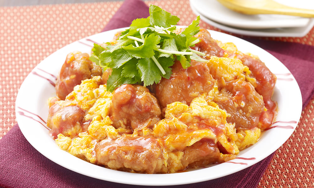 卵ふわふわ鶏のチリソース