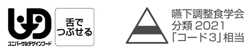 - UDF区分「舌でつぶせる」、嚥下調整食学会分類2021「コード3」相当の冷凍介護食品です。