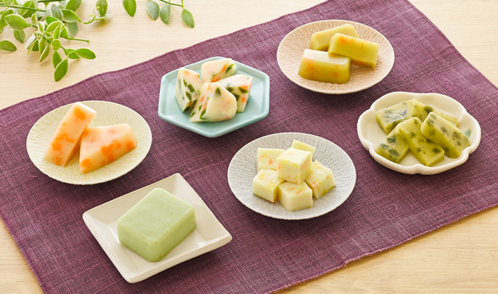 | 商品名 | ①やさしいおかず キャベツの梅和えムース ②やさしいおかず ほうれん草の白和えムース ③やさしいおかず きゅうりのナムルゼリー ④やさしいおかず きゅうりの酢の物ゼリー ⑤やさしいおかず コールスローゼリー ⑥やさしいおかず たまねぎサラダゼリー |