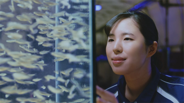 今回登場するのは、子どもが生まれた家族と、魚の育種に従事する研究員。一見関係がないように見える両者に通底するのは、「いのちと未来」を想う温かい眼差しです。親が子を抱きながら、その子が暮らしていく世界がやさしいものであってほしいと願う。その想いは、持続的な社会のため環境に配慮した漁業に取り組む、マルハニチロのサステナブルに対する想いでもあります。