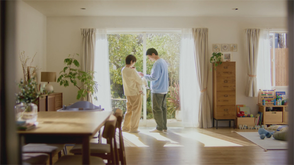 研究員が試験場で魚たちに想いを込める姿とリンクするように、両親は子どもに触れ、その未来に想いをはせます。親は子を想う。子はそんな両親の愛情を希求し、想いを受け取る。そんな愛情の行き来を表現しました。