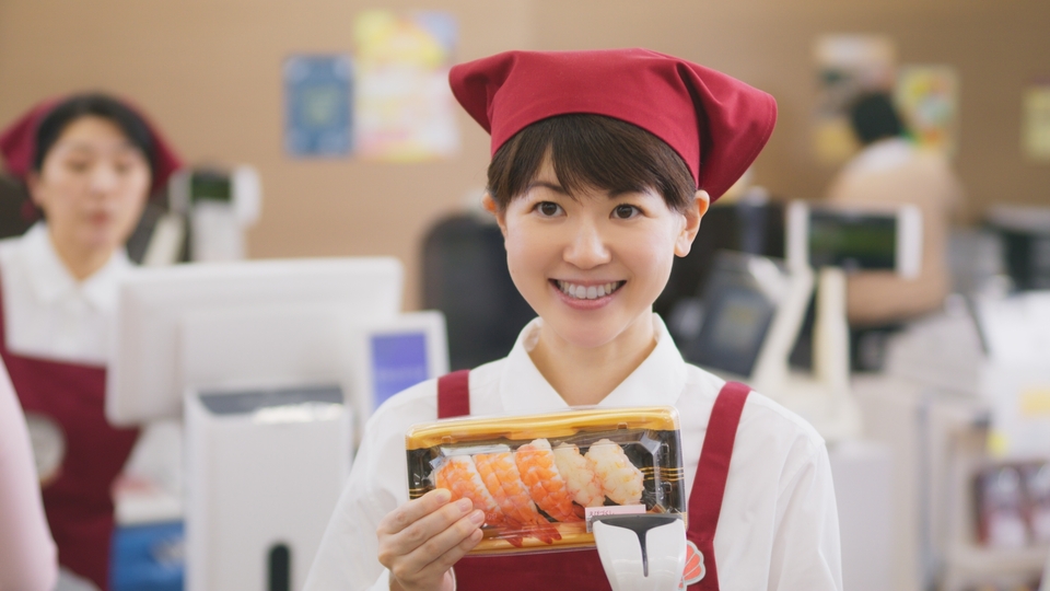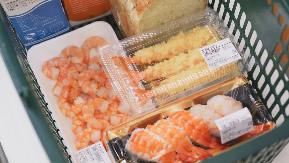 今回は当社が世界各地から輸入し、国内トップシェア(※)を誇る「エビ」をテーマに、「お客様の身近にあるマルハニチロ」を表現しています。作品中ではスーパーマーケットの惣菜売り場で販売しているエビ天ぷらとエビの握り寿司、水産売り場のむきエビが登場しますが、当社はそれらに加えて、外食チェーンや給食など、幅広い業態にさまざまな種類、規格のエビを取り扱っています。
