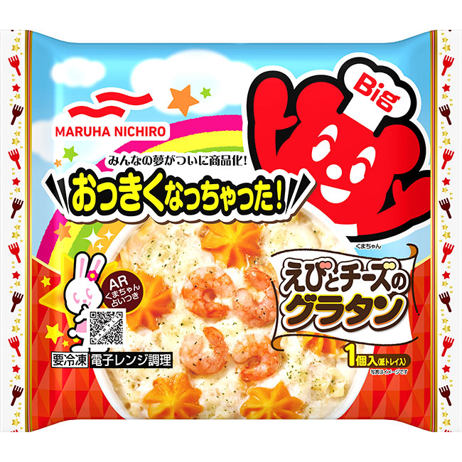 このたび、お弁当品として長く愛されてきた同シリーズの「えびとチーズのグラタン」を、かわいい見た目とおいしさはそのままに、食べ応えのあるサイズにした「おっきくなっちゃった!えびとチーズのグラタン」を数量限定で発売いたします。SNSなどを通じて寄せられた「思い出の味をおなかいっぱい食べてみたい」という声をもとに、お客さまの夢やアイデアを形にした特別な商品です。