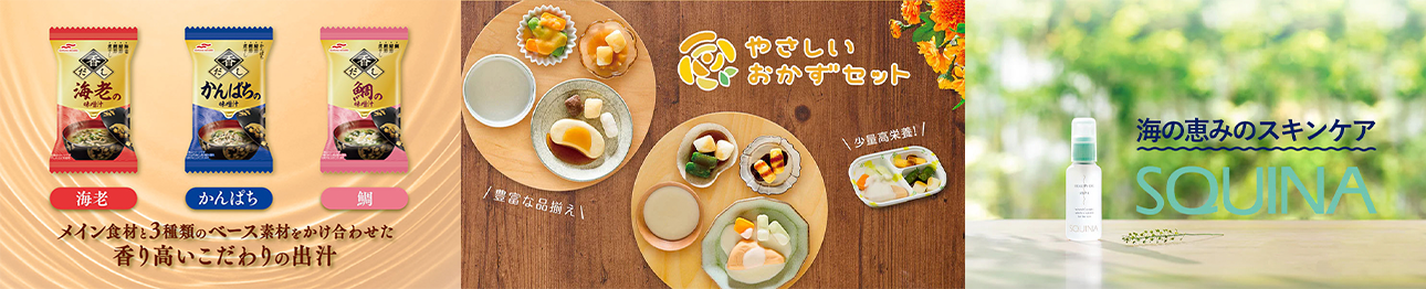 冷凍食品、缶詰、フリーズドライ、メディケア食品からスキンケア商品まで、マルハニチロならではの多彩なブランドをカテゴリーごとに詳しく紹介します。