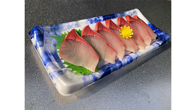 本発明により、天然魚や既存の養殖魚と比較して血合肉の褐変が遅く、口どけが良好で、旨み成分が多い一方で苦み成分が少なく、魚特有の臭いが低減された刺身商品を提供できるようになりました。