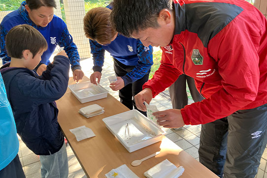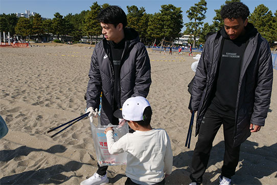 ▲クリーンアップ活動の様子(写真中央)石田選手、(写真右)米須選手・山内選手