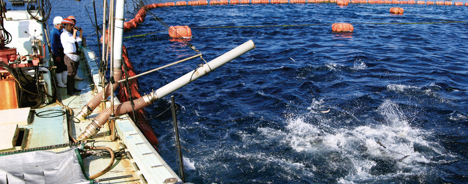 クロマグロの完全養殖技術をはじめ、ブリ、カンパチなどの養殖における国際的な各種認証の取得や魚粉比率を下げた配合飼料の使用などを通じ、天然水産物資源への負荷を極力低減し、海洋環境にやさしく持続的な養殖により、世界中で拡大を続ける水産物需要に応えます。