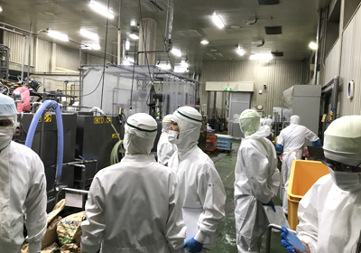 また、複数の工場を有する当社ならびに(Umios北日本株式会社、Umiosヤヨイサンフーズ株式会社では、各社の工場間で相互内部監査を実施しています。この監査により、より客観的な視点での監査が可能になるほか、監査スキルの向上や環境に関する工場間の情報交換促進などの効果を上げています。