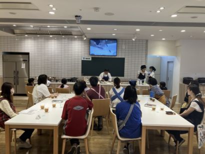 私たちは、全国の親子に魚食の楽しさ、おいしさを知っていただき、健康な食生活に役立てていくことを目的として2015年からシェフ直伝親子料理教室を開催しています。昨年度と同様に2024年度もテーマを「海といのちの未来をつくる~親子で楽しいお魚クッキング~」とし、4月に東京ガス、大阪ガス(株)、6月に東邦ガス(株)、8月に京葉ガスと共同で4回開催しました。イベントの冒頭では「お魚のセミナー」も開催し、参加者の皆さまにお魚の雑学を楽しく学んでいただきました。また、一部開催のイベントでは MSCジャパンの方に水産物の持続可能性に配慮したMSC「海のエコラベル」に関する紹介もしていただきました。