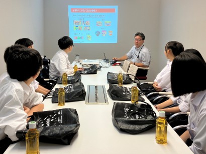 当社グループでは、中学生や高校生の教育・学習支援の一環として、生徒が企業の事業内容や SDGs に関する取組みについて学び、理解を深める機会を提供するため、定期的に訪問学習を受け入れています。2024年度は、福島市立吾妻中学校、山形市立第八中学校、愛知県岩倉市立南部中学校、佐賀県立佐賀西高等学校などの訪問学習(一部オンライン)を受け入れ、当社の事業内容や事業活動を通じて SDGs 達成のために行っている取組みについて紹介しました。社会全体で SDGs への関心が高まっている中、学校のカリキュラムとして SDGs を学ぶ機会が増えてきており、企業の取組みについて中高生や大学生からの問い合わせも増えています。