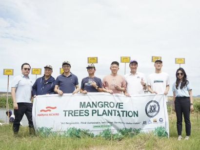 2024年3月に当社サプライヤーのMega Marine Pride社(以下MMP社)の協力のもと、当社グループから水産第三部、スラバヤ駐在員事務所、マルハ上海から総勢5名参加しMNP社従業員と合わせて75名にて500本を植樹しました。