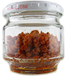 また、びん詰の蓋の中央部分が凹んでいれば、密封性が保たれていますので、品質には問題ありません。蓋の中央部分が膨らんでいる場合は密封状態ではないため、品質の劣化が早まる可能性があります。常温保存ができませんので、冷蔵保管のうえ、お早めにお召し上がりください。