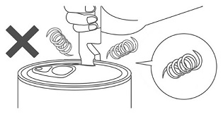 EO缶詰(イージーオープン缶)を手ではなく缶切りで開けると、らせん状に切り屑が発生することがございますのでご注意ください。