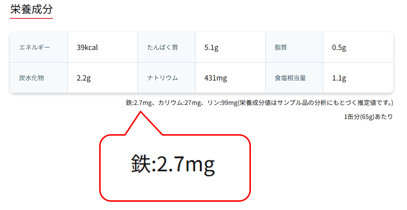 | お客様からの声 | 「あさり缶詰の鉄分はどのくらい含まれているのか教えてほしい。」というお問合せをいただきました。 |