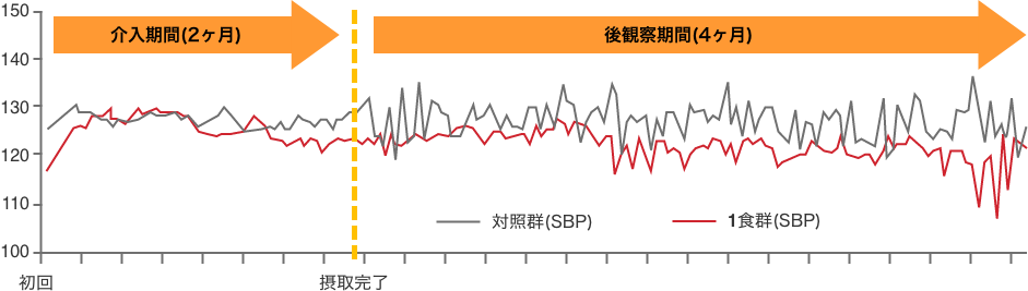 これらの結果より、1日1食型のDASH食であっても、高血圧の予防・改善に効果があることが確認できました。