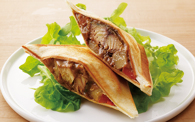 さばとじゃがいも、にんじん、たまねぎを合わせた家庭的な組み合わせのカレー缶詰です。さばに衣を付けて揚げることで、さば特有の臭みを抑えました。