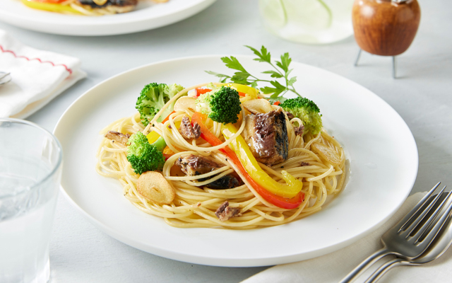 国産のいわしを蒸し煮にし、こめ油と塩を加え油漬けにした缶詰。さらりと軽いこめ油だから料理に使ってもおいしいレシピの仕上がりに。