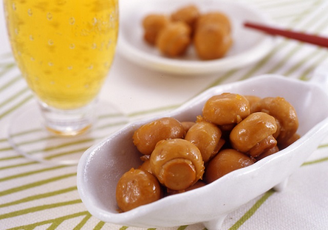 続けて玉ねぎを炒め、透き通ってきたらにんじんも加えて炒め、表面に油が行き渡ったら、マッシュルームホール(水煮)を汁ごと入れ、水とコンソメスープの素も加え、アクを取りながら弱火で15分煮てじゃがいもを加える。