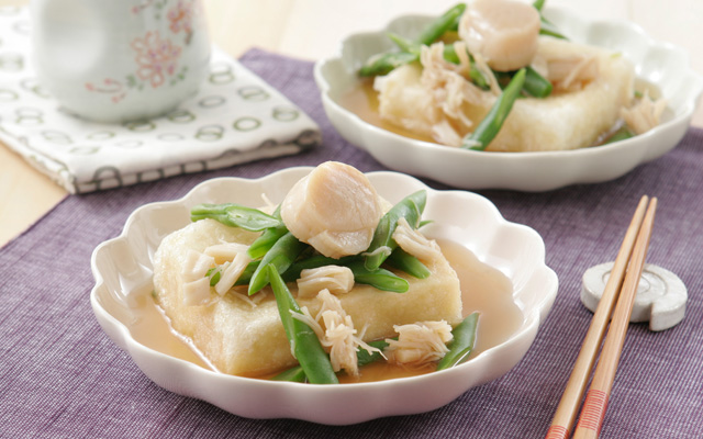 わさびとさわやかなレモンが隠し味となった、ホタテ缶を使ったサラダです。わさびが苦手な方にはわさび抜きでもお召し上がりいただけます。