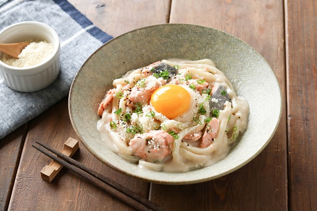 ぶなしめじを入れてもおいしいです。タラなどの他の白身魚でもおいしく召し上がれます。 〈Chefitサーモンのクリーム煮の素にサケ2切れを加えて調理した時の栄養成分値〉 エネルギー:275kCal、たんぱく質:21.0g、脂質:19.5g、炭水化物:3.9g、食塩相当量:0.9g