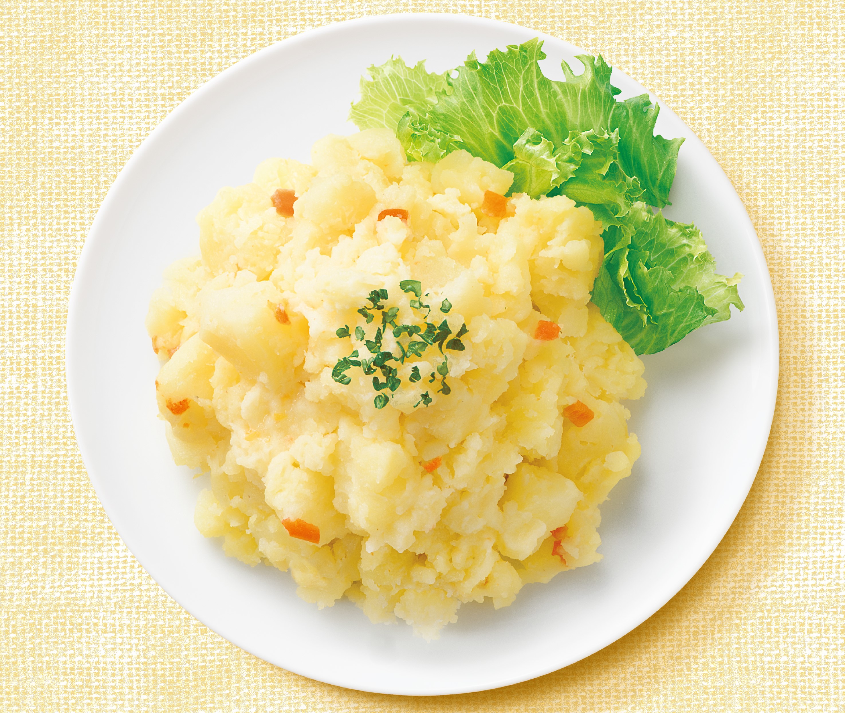 合わせ調味料「Chefit ポテトサラダの素」とじゃがいもを用意し、パッケージ裏面に記載の調理方法に従い調理する。